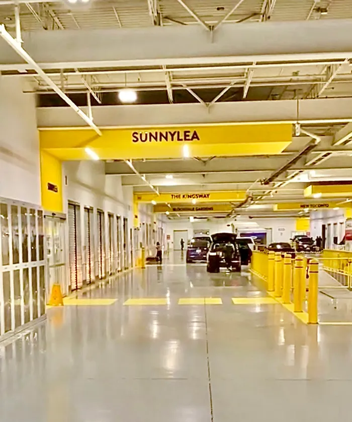 ⑤ Drive to our location, enter through the automatic bay doors, park inside, and walk to your locker.